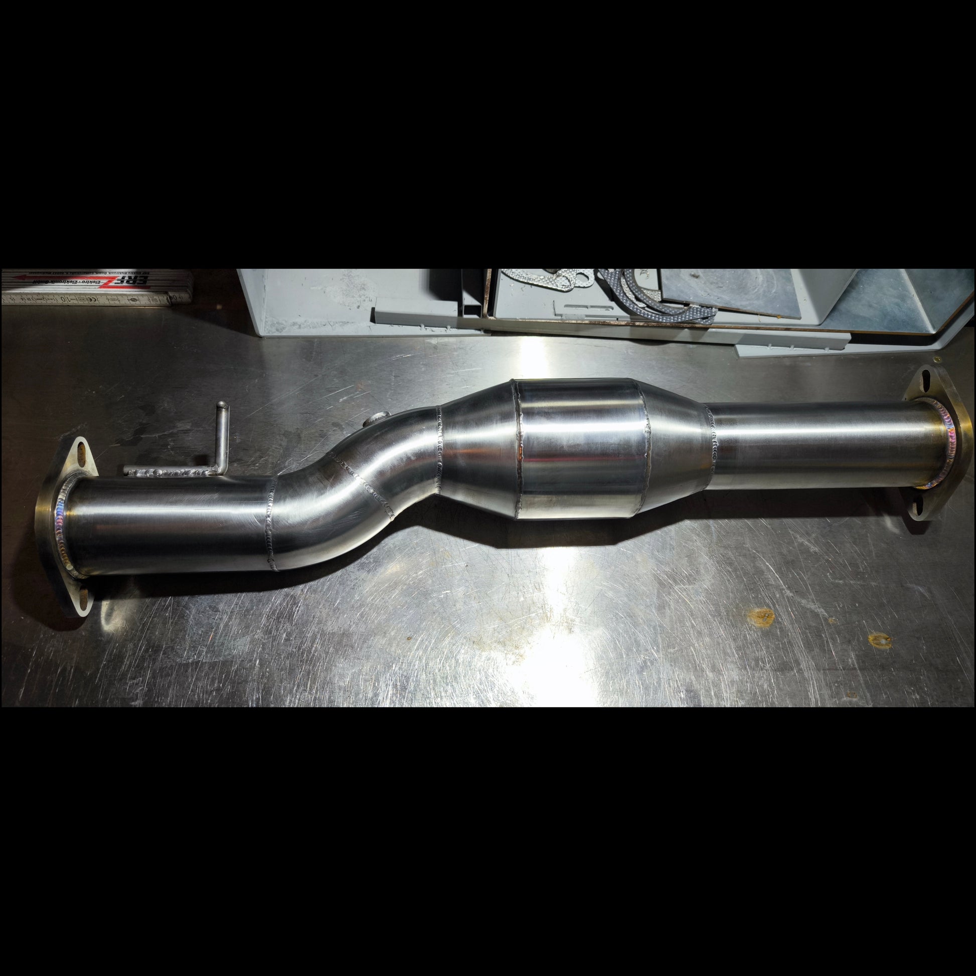 Der handgeschweißte Katersatzschalldämpfer aus 76 mm Edelstahl wurde speziell für den Mitsubishi Lancer Evolution 10 entwickelt. Er ersetzt den serienmäßigen Katalysator und sorgt für einen leistungssteigernden Abgasfluss bei gleichzeitig angenehmer Geräuschkulisse – ideal für sportliche Anwendungen und Trackdays.