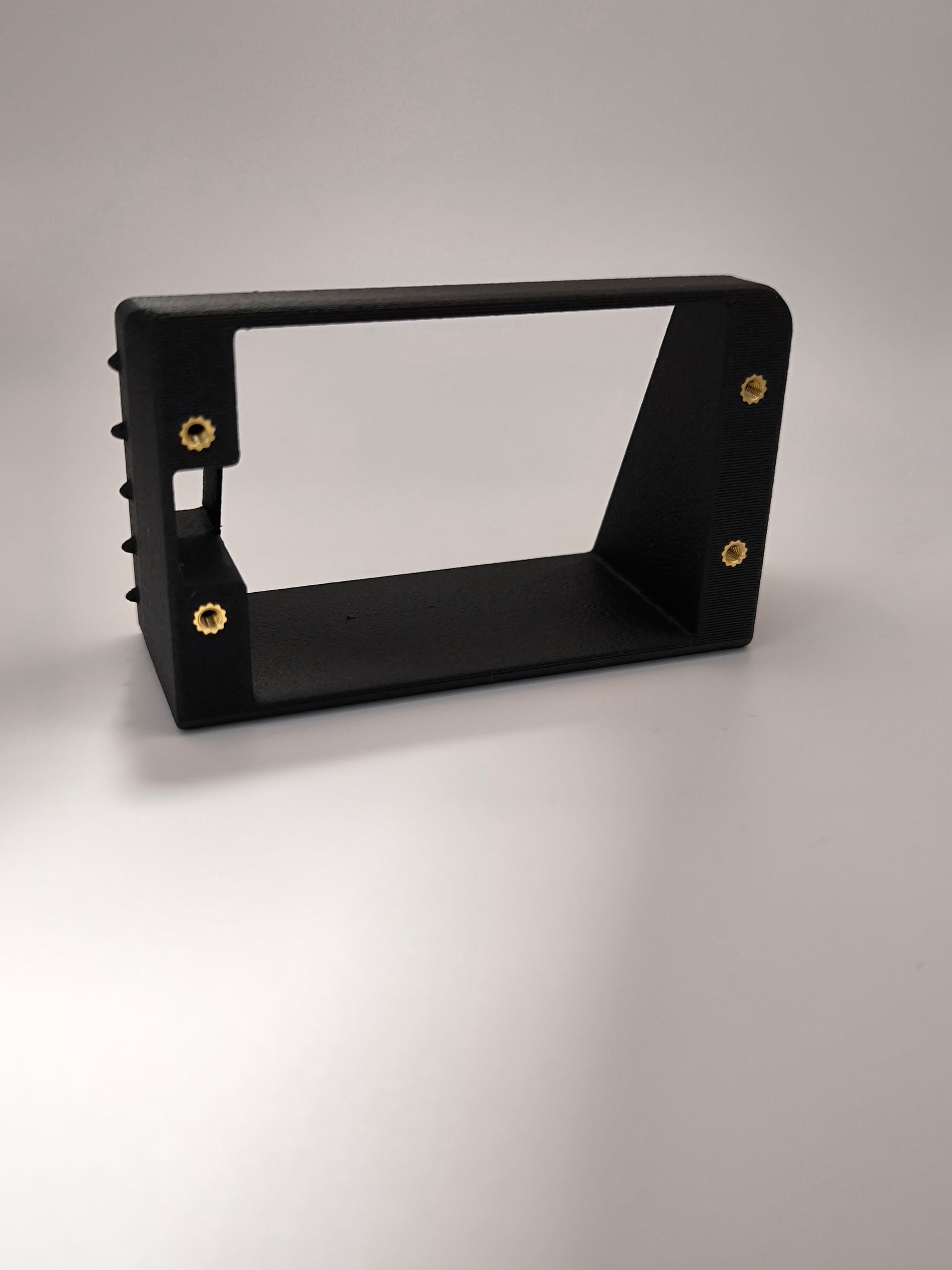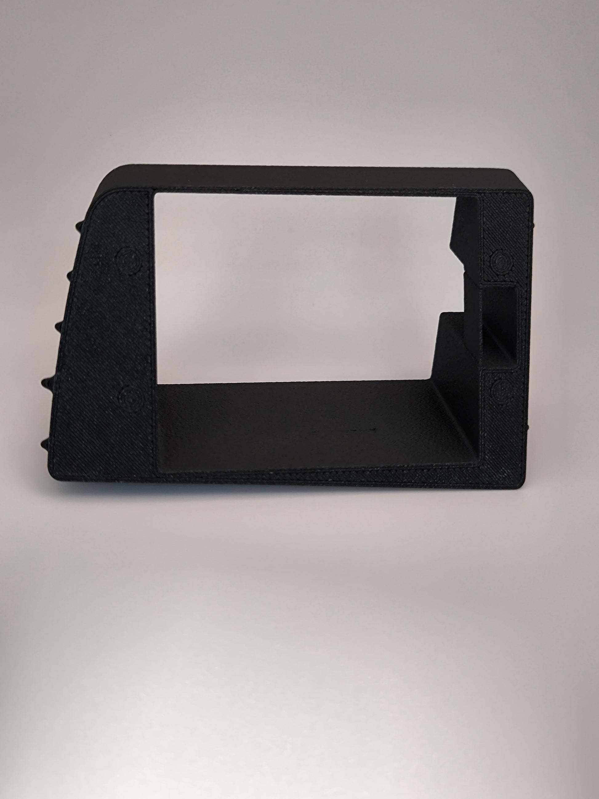 Präzise gefertigter Halter für das Canchecked MFD28 Multidisplay – zugeschnitten für die mittleren Lüftungsdüsen des Mitsubishi Lancer Evolution 7, 8 und 9. Entwickelt und 3D-gedruckt In-House bei ABCustoms aus kohlenfaserverstärktem, hitzebeständigem Kunststoff für maximale Steifigkeit und Formstabilität am Armaturenbrett.