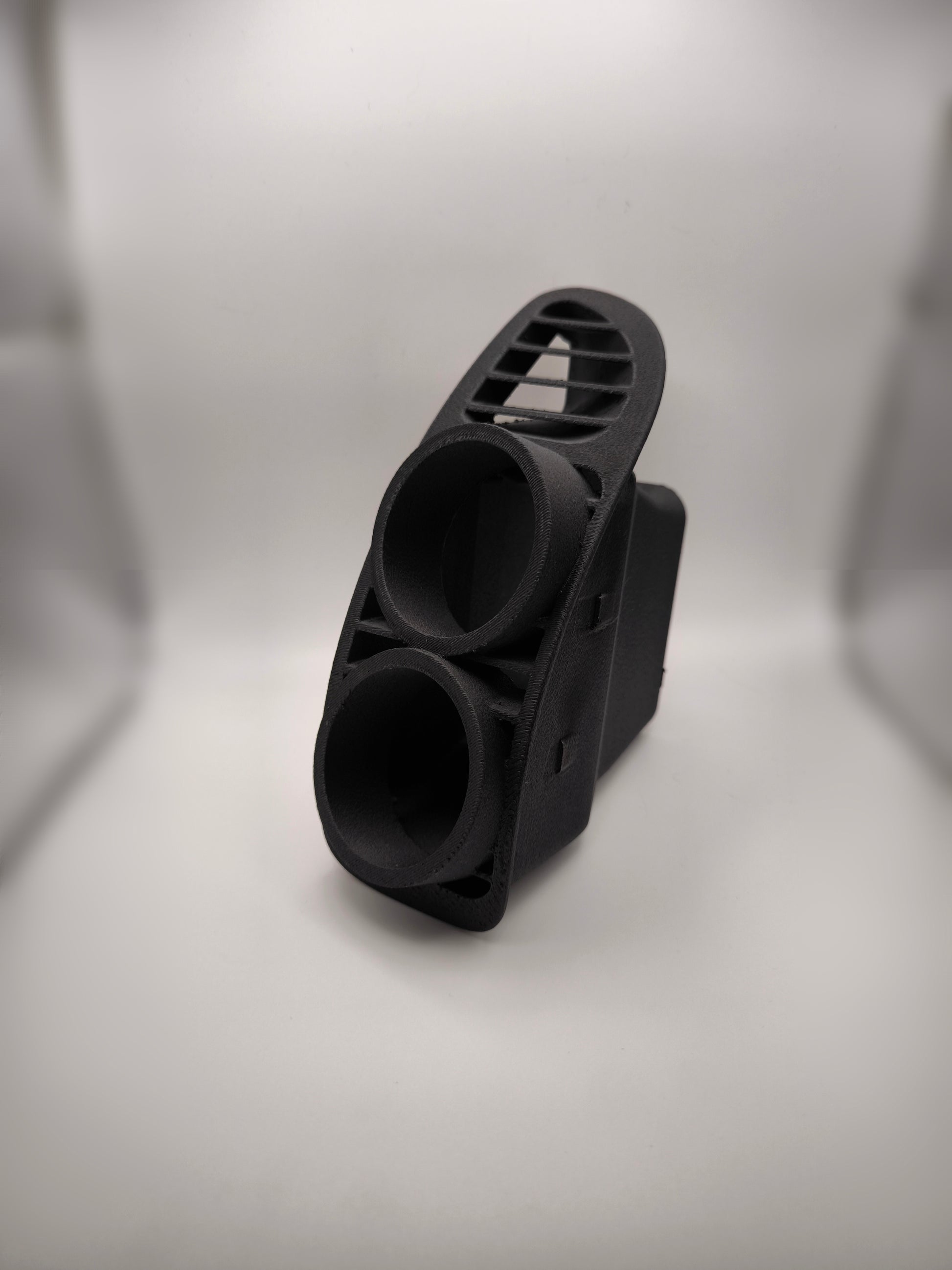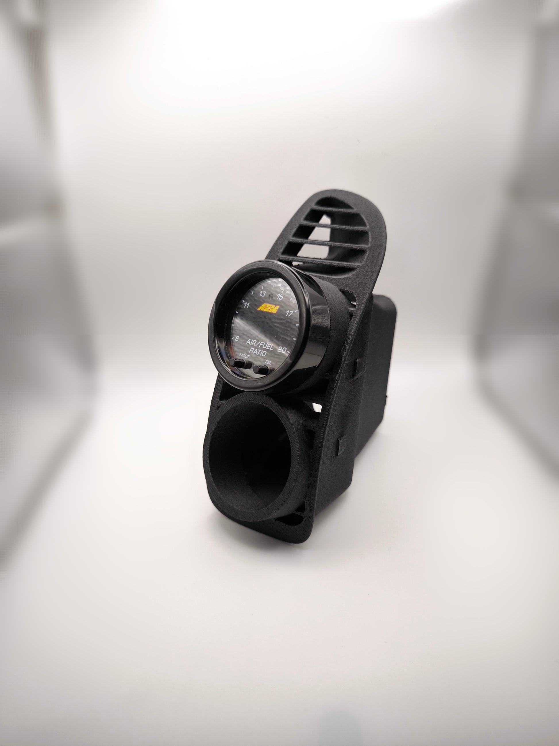 Präzise gefertigter Doppel-Anzeigenhalter, der die äußere Lüftungsdüse im Armaturenbrett ersetzt und Platz für zwei 52 mm Zusatzanzeigen bietet. Ideal für Fahrer, die wichtige Motorparameter direkt im Sichtfeld überwachen möchten – sauber, OEM-nah und funktional.