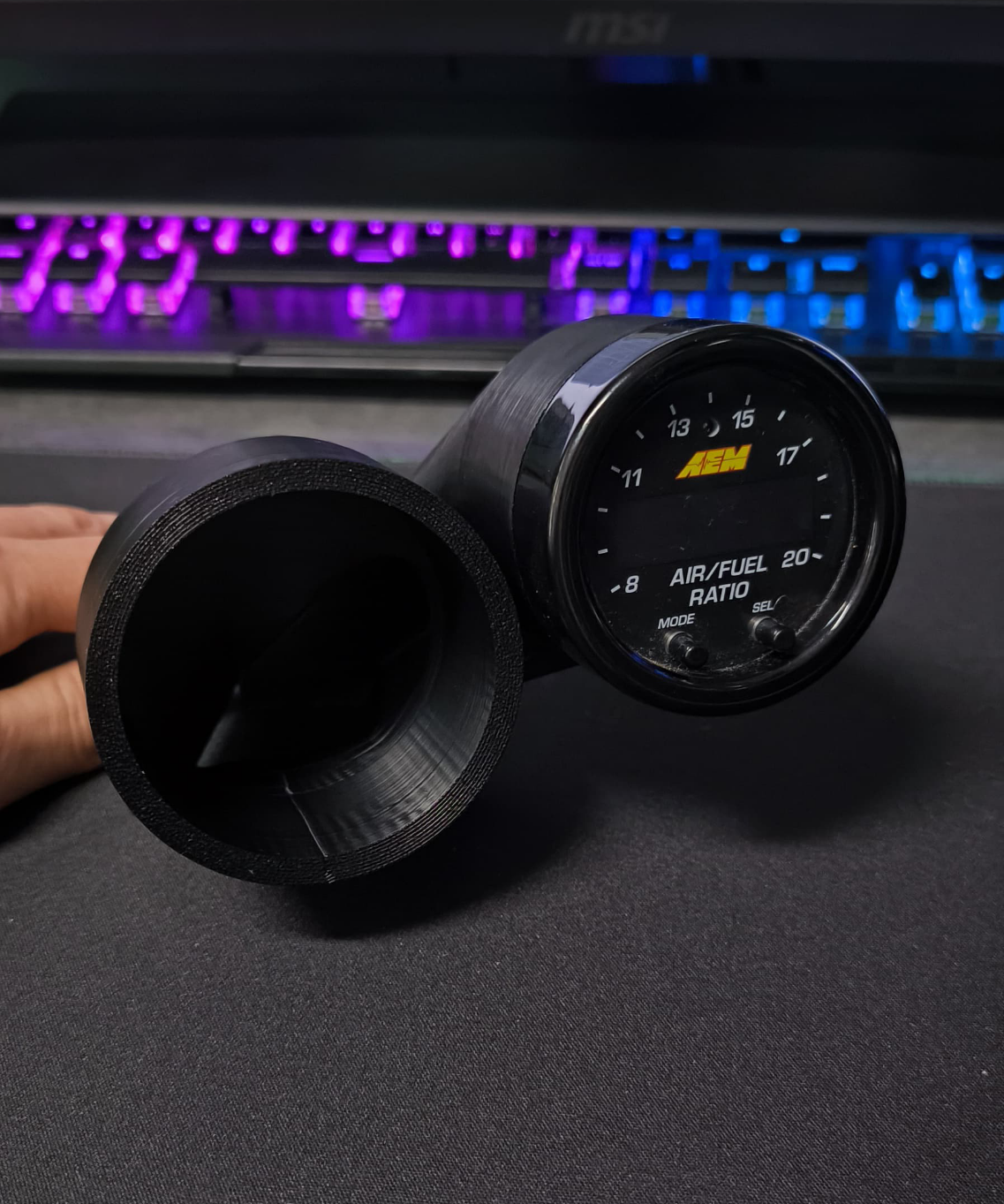 Dieser hochwertig gefertigte Zusatzanzeigenhalter ersetzt eine originale Lüftungsdüse im Mitsubishi Lancer Evolution 7, 8 oder 9 und ermöglicht die saubere Integration von Zusatzinstrumenten im direkten Sichtfeld des Fahrers.