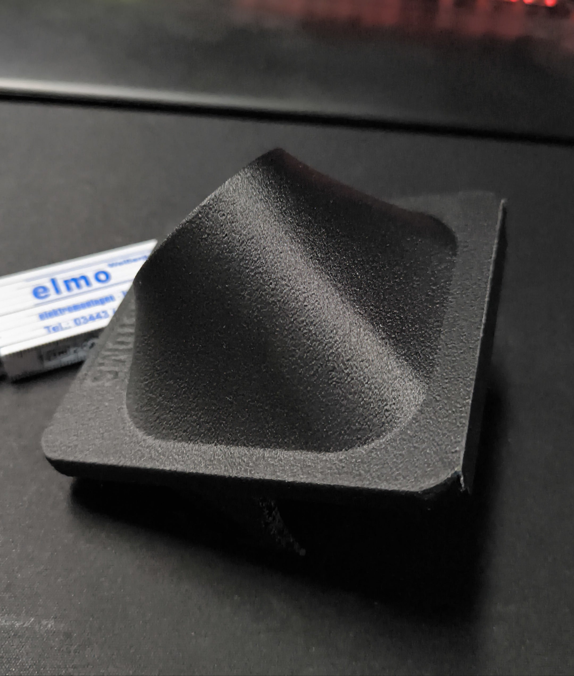 - Gedruckt aus kohlefaserverstärktem Kunststoff → matte, strukturierte Oberfläche & hohe Festigkeit