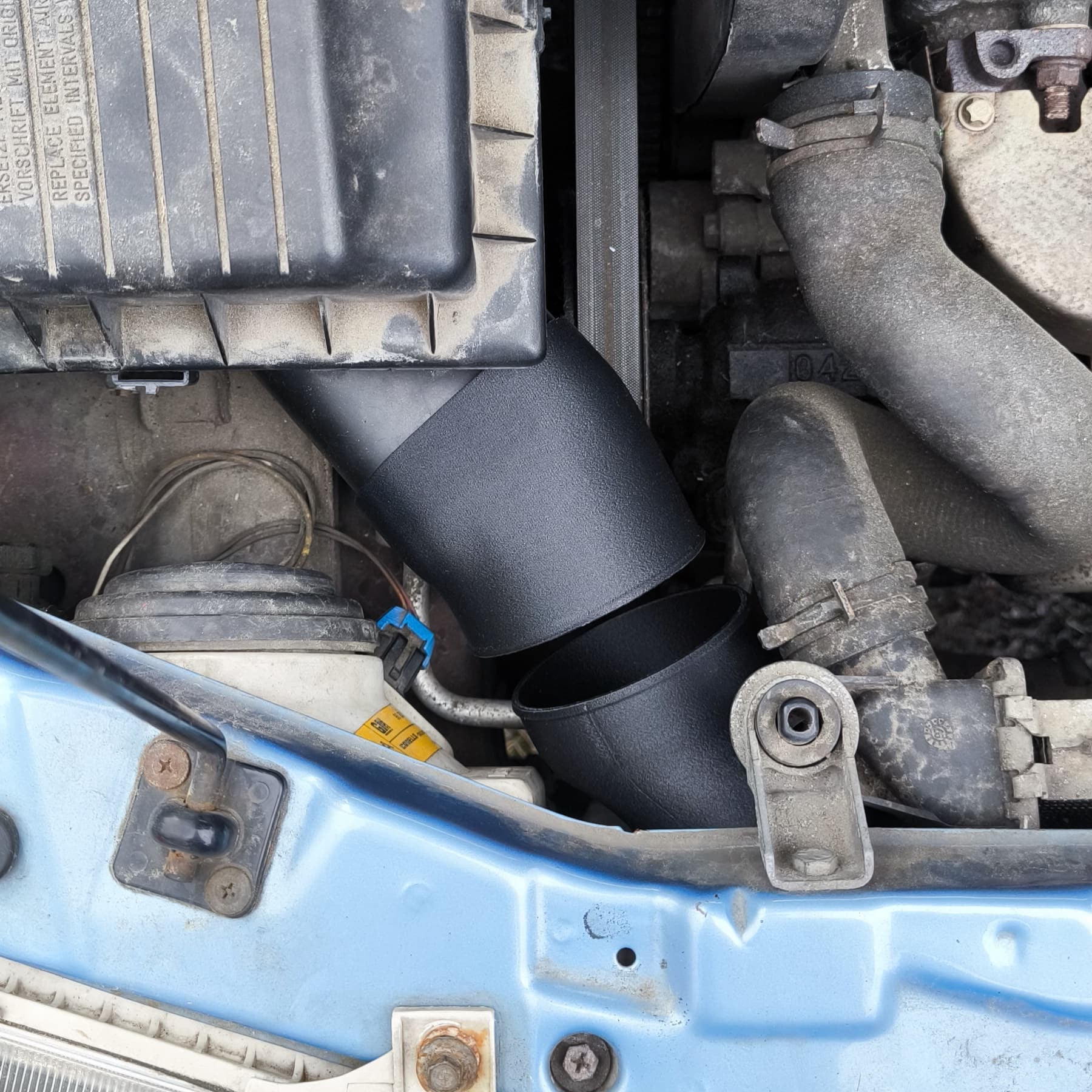 Diese maßgeschneiderte Luftführung für den Opel Astra F wurde selbst konstruiert und wird im 3D-Druck aus kohlefaserverstärktem Kunststoff hergestellt. Sie ermöglicht eine direkte und maximale Anströmung durch die Fahrzeugfront bis zum Luftfilter – ideal für verbesserte Frischluftzufuhr und Performance. Die Luftführung ist absolut passgenau und einfach zu montieren.