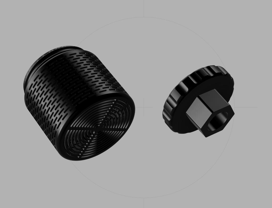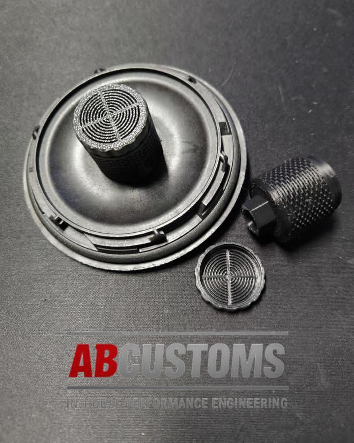 Der Deckel der Behälter besitzt ein konisch zulaufendes Sechseck, das passgenau in die Innenseite der originalen Scheinwerferdeckel gedrückt wird. Nach dem Einsetzen sitzt der Behälter fest im Deckel und kann seine Funktion direkt im Scheinwerferinneren erfüllen.